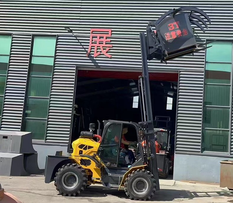 Sur la photo, notre équipe technique chez Kaystar teste avec rigueur les performances du Landtiger35R, un chariot élévateur tout-terrain de 3,5 tonnes de capacité. Ce modèle robuste à articulation arrière est spécialement conçu pour les environnements difficiles, notamment les chantiers, les scieries et les zones de recyclage.